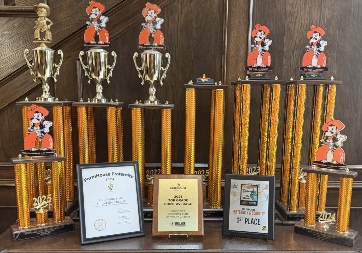Established on May 12, 1928, FarmHouse Fraternity at Oklahoma State University was founded on agricultural values emphasizing integrity, hard work, and service. What began as a small brotherhood has grown into a community dedicated to leadership, scholarship, and lifelong brotherhood, preparing members to lead with purpose both on campus and beyond.